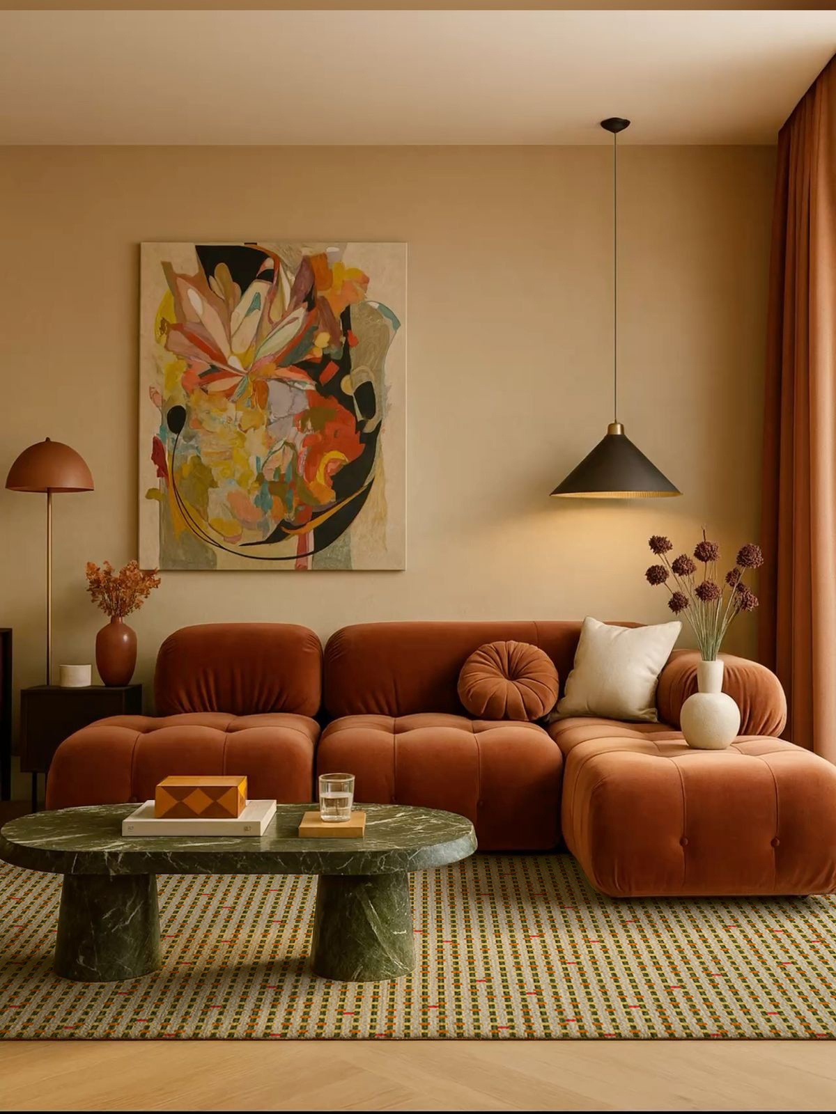 Inspiré par les flamboyants couchants de Capri, ce tapis de la collection ELÉVATION marie l’orange brûlant et le jaune lumineux, tissé à plat en laine et cactus par les mains expertes de nos artisans. Une explosion de lumière méditerranéenne, pour des intérieurs où le luxe s’écrit en couleurs vibrantes et en matières nobles.